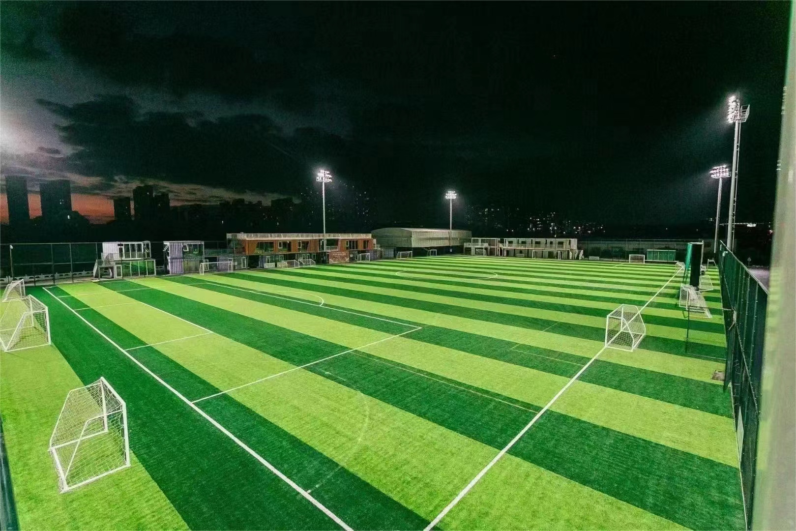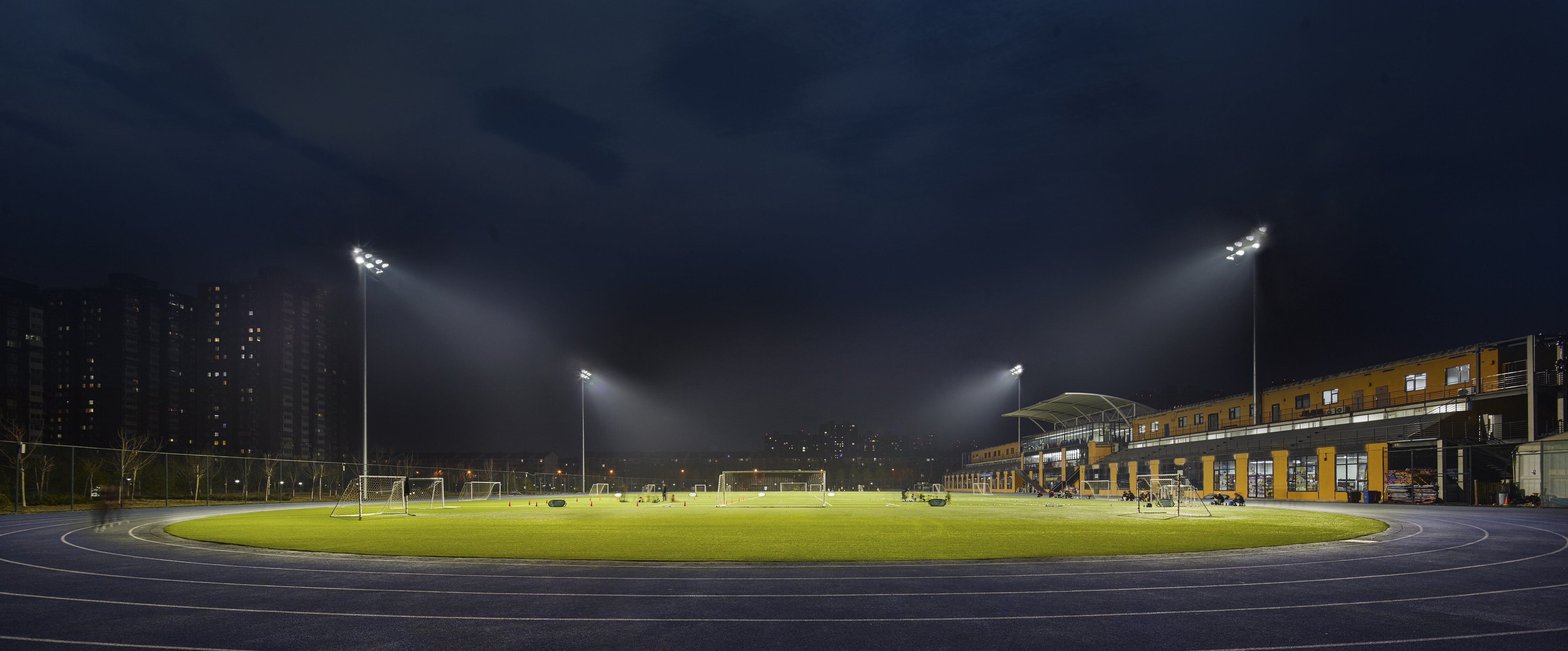 11人制標(biāo)準(zhǔn)足球場采用賽倍明S600 LED投光燈提供夜間照明,照度等級達(dá)到體育場館照明III級專業(yè)比賽級別。